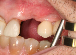 El caso se inicia con la pérdida de la pieza 23 en una zona de alta exigencia estética, tras una extracción compleja que requirió regeneración ósea previa. Tras el estudio diagnóstico, se planificó la colocación de un implante, que se integró correctamente y permitió recuperar función y estética en esa área concreta. Sin embargo, el seguimiento clínico puso de manifiesto algo habitual en este tipo de pacientes: la existencia de múltiples factores que condicionaban el resultado global y la estabilidad a largo plazo del tratamiento.